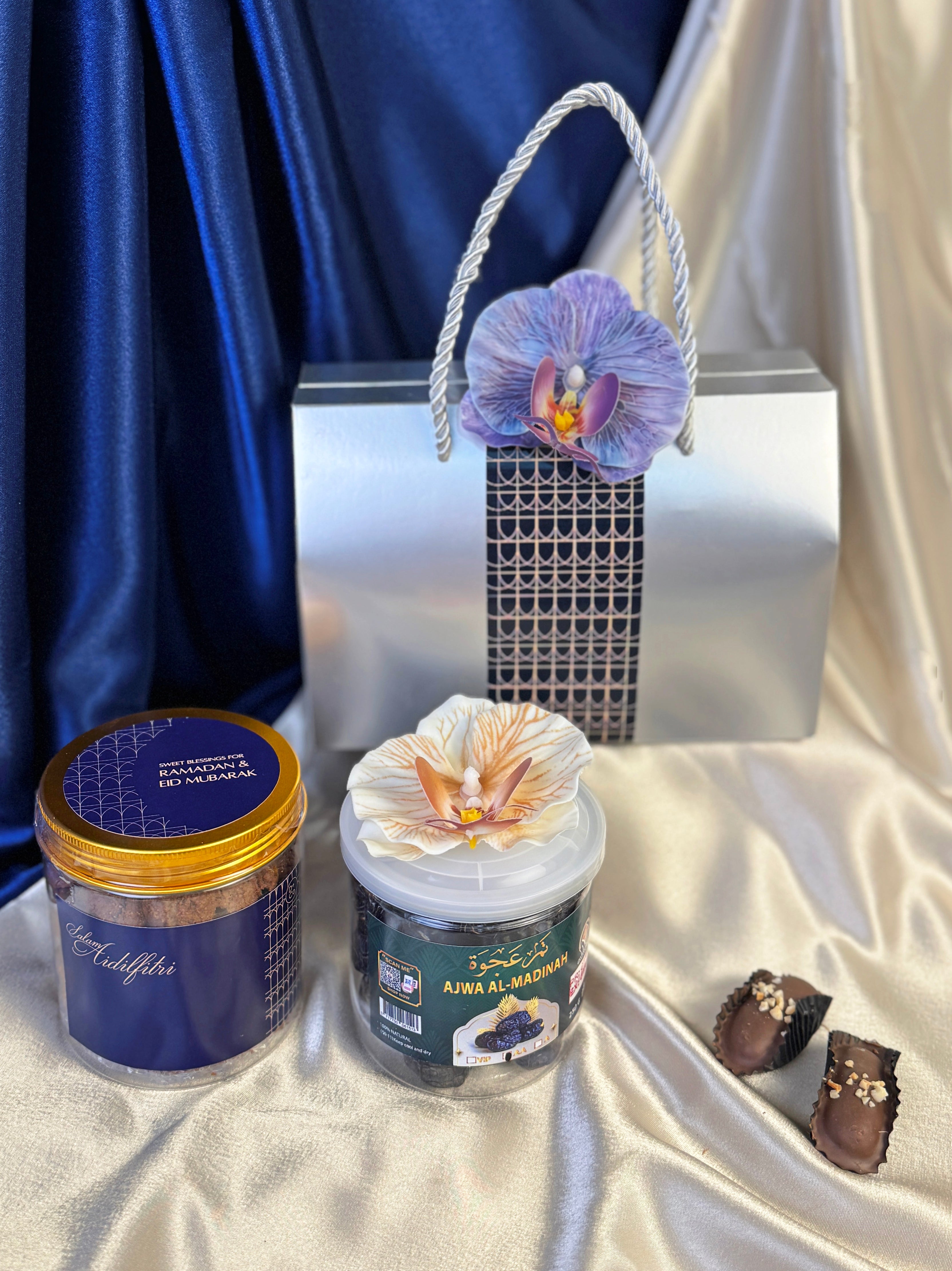 Option A: 1 jar Raya cookies (Halal) & 1 jar Kurma ajwa